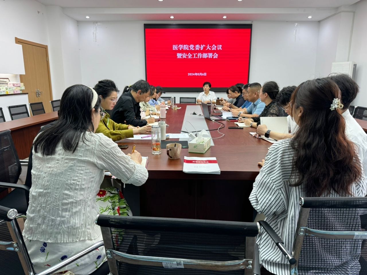 5月6日,为深入贯彻落实习近平总书记关于关于统筹发展和安全工作的重要指示批示精神,医学院召开党委扩大会议部署学院安全工作。医学院党委书记林海斌主持,党政班子、党委委员、支部书记、实验办、教学办、综合办和学工办参加会议。
