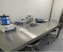 细胞培养室配备常用的科研仪器:Thermo 240i二氧化碳培养箱、Heal Force HF90二氧化碳培养箱、库克K-MINC-1000桌面三气培养箱、Heal Force HF100三气培养箱 、Thermo1384生物安全柜、Heal Force HFsafe-1200LC生物安全柜、超净工作台、Olympus IX73P2F研究级倒置荧光显微镜、Olympus CKX53荧光倒置显微镜、细胞计数仪、离心机等。