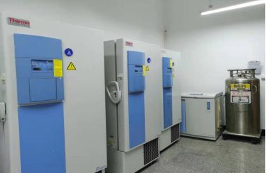 低温保存实验室配备常用的科研仪器:Thermo Forma 902超低温冰箱、Thermo 7400液氮存储系统等。