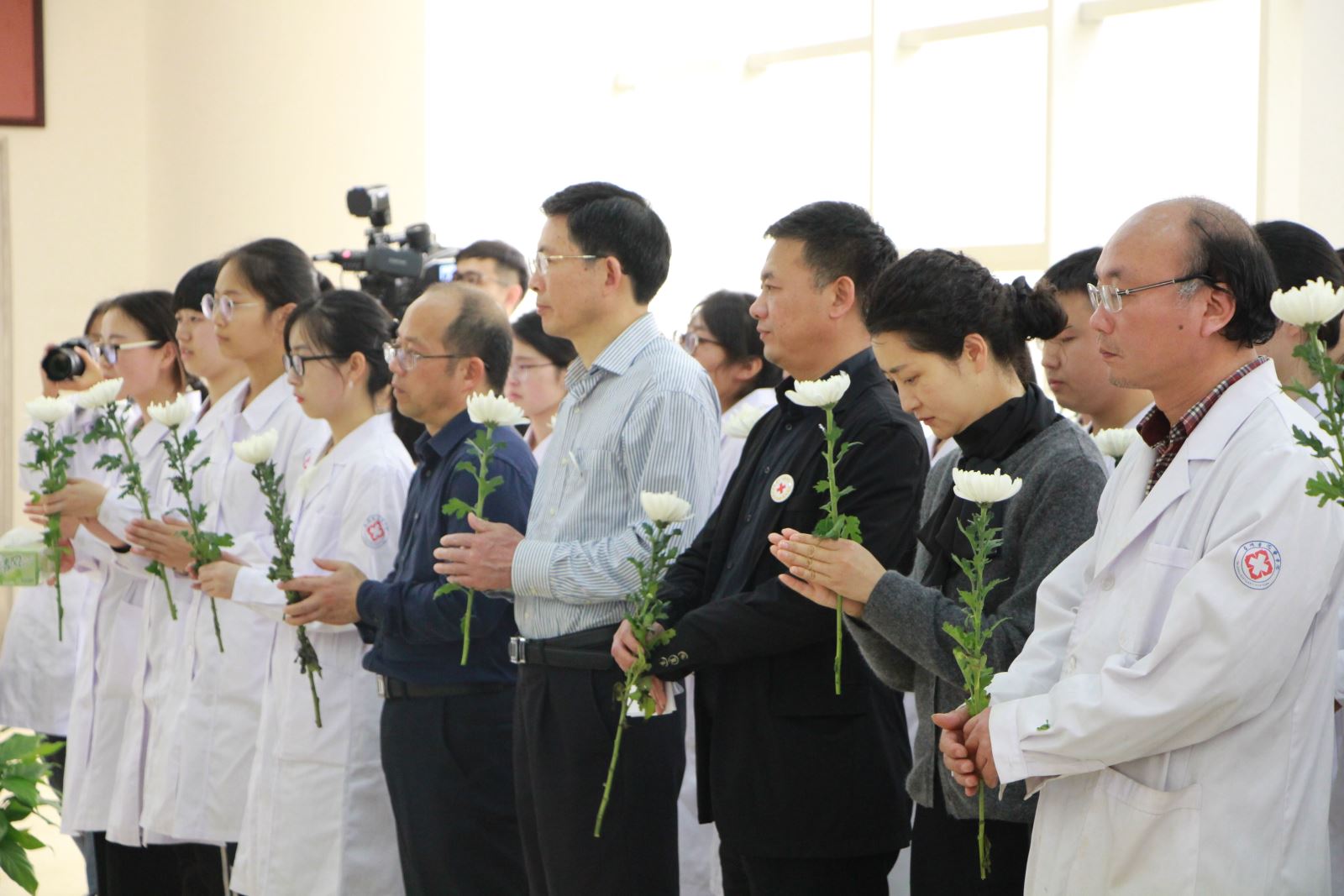 清明之际,由医学院、台州市红十字会主办的“遗爱人间,无言礼赞”大体老师与人体器官捐献者缅怀仪式,于4月4日中午在医学院大厅正式举行。医学院党总支书记李仲斐、党总支副书记周敏,台州红十字会党总书记、会长金先军,党组成员、副会长李昌建,爱心捐献者家属代表,红十字志愿者代表,以及医学院120余名师生代表集体出席仪式。