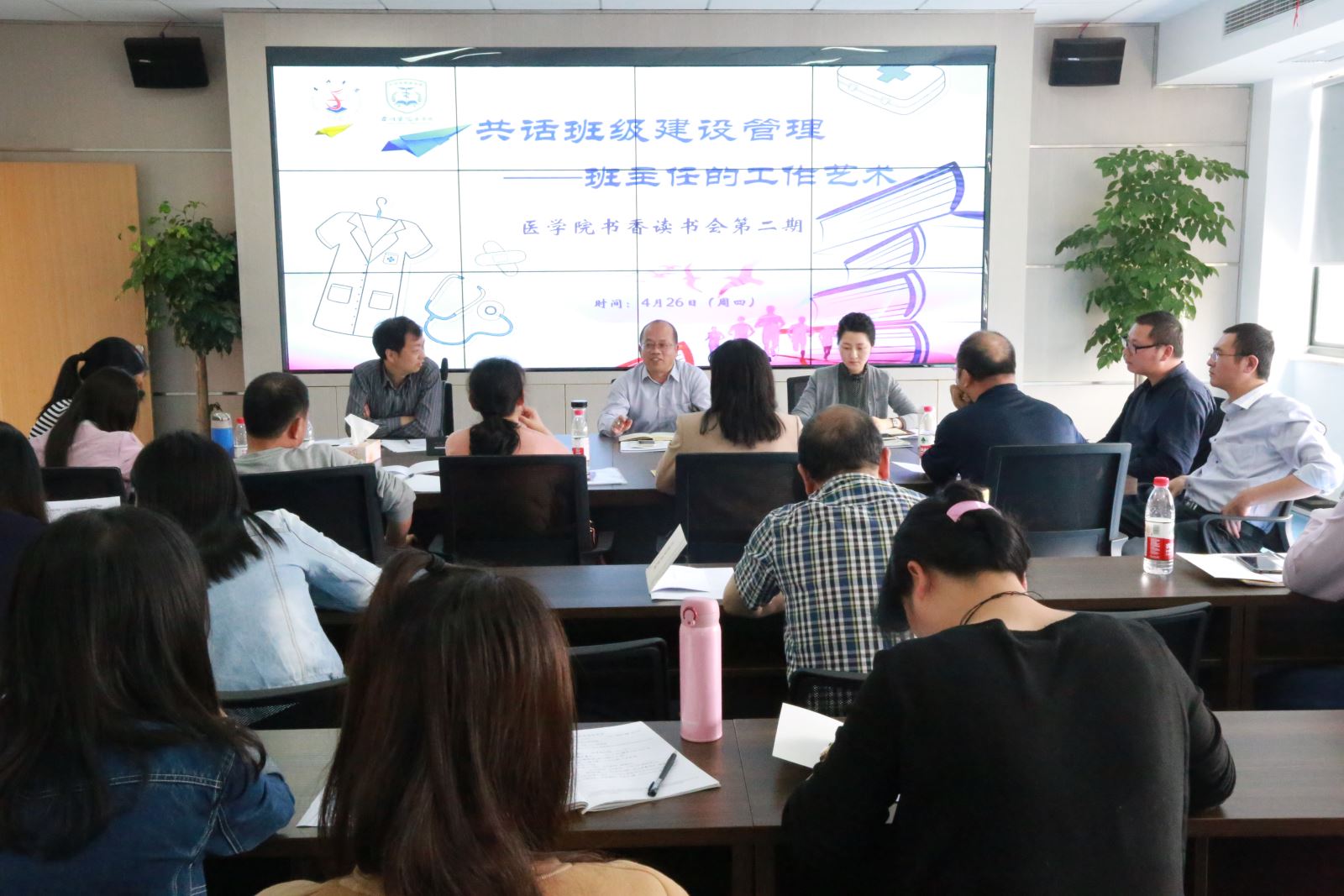 4月26日下午,医学院第二期“书香读书会”在A442教室举行,医学院党总支书记李仲斐、副书记周敏出席;学院辅导员及全体班主任参加会议,围绕“班主任的工作艺术”主题,共话班级建设管理,合力促建迎评。