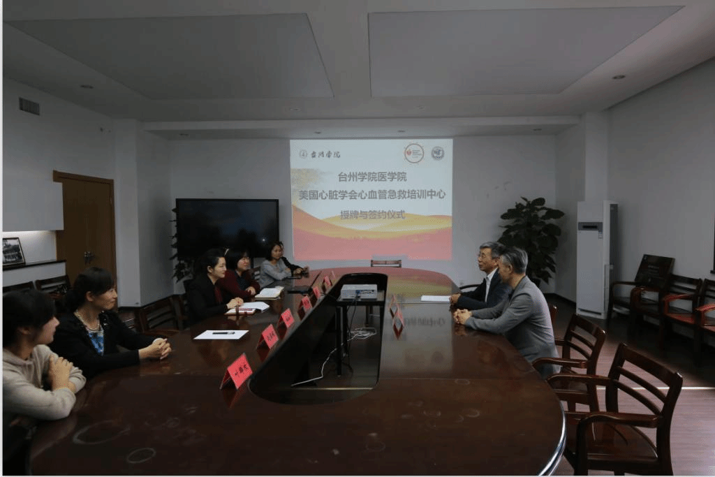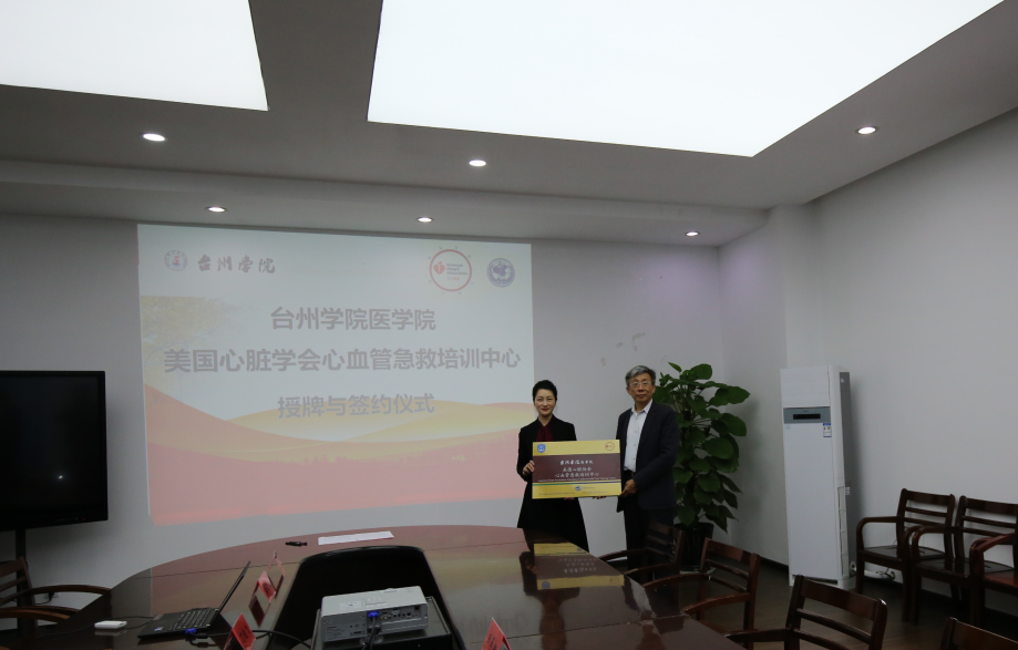 5月8日上午,台州学院医学院美国心脏协会心血管急救培训中心授牌与签约仪式在医学院第一会议室举行,美国心脏协会国际培训中心的协调员、香港国康医疗器材有限公司副总经理王革新、医学院党总支副书记周敏共同为医学院培训中心揭牌。