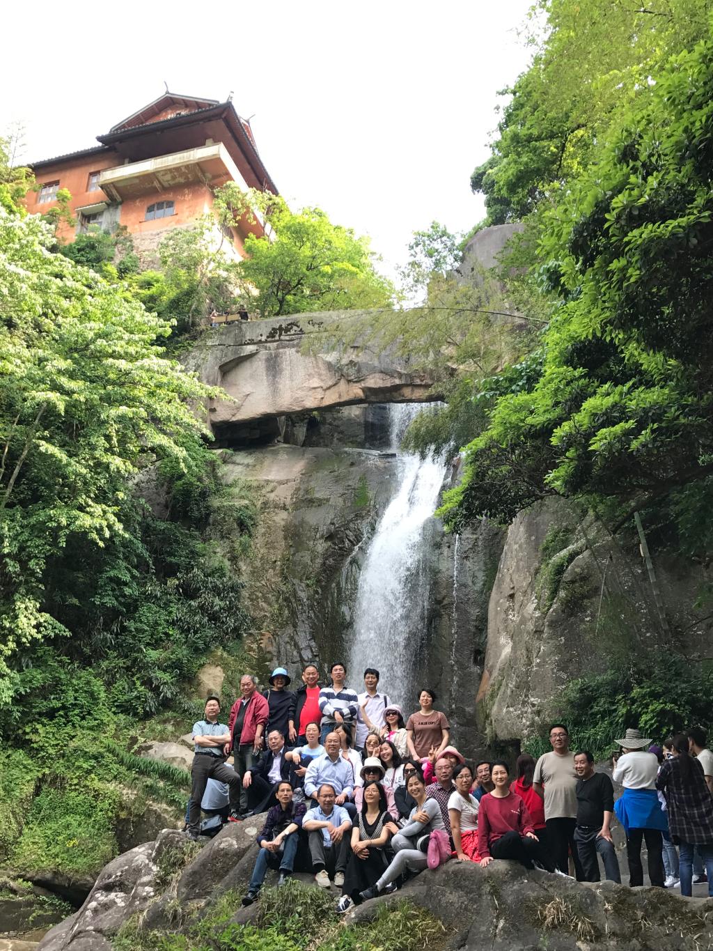 上午,大家走进始建于1400多年前开创佛教天台宗之先的国清寺。该寺在南宋被列为“江南十刹”之一,自然景观幽美,人文景观也别具特色。通过参观,大家感受了这里的佛宗道源、山水神秀。下午接着参观了石梁飞瀑。一条二丈左右的天然石梁桥,横跨两侧险峻悬崖之间,微微拱起的梁面,仿佛一条匍伏的巨蟒,左右而来的两条溪水激起浪花万朵,飞流直下,真有“沧海平翻龙背上,银河倒泻雀桥东”之势,在这青山秀水之间,老师们抛下了一切尘世烦恼,享受了一次心灵的洗礼。