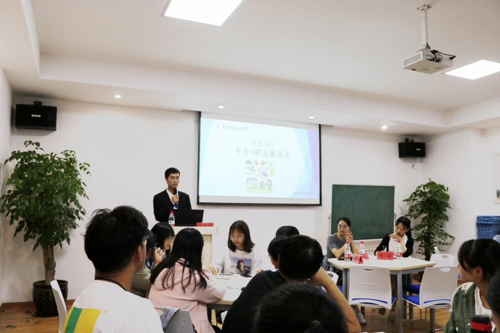 2019年10月16日,医学院于A-203举行康复治疗专业+职业座谈会。台州市中心医院康复科刘佳老师、2016级康复班主任陶媛老师出席本次座谈会。