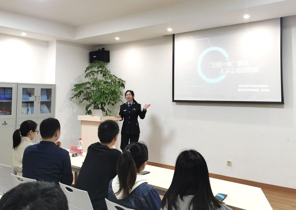 11月4日,“相约星期三”平安微课活动在医学院举行。本次活动有幸邀请台州公安平安宣讲团、路桥公安分局民警杨晓雅为大家讲解防诈骗知识。学校保卫处叶挺婷老师、医学院任仲佩老师出席本次活动。