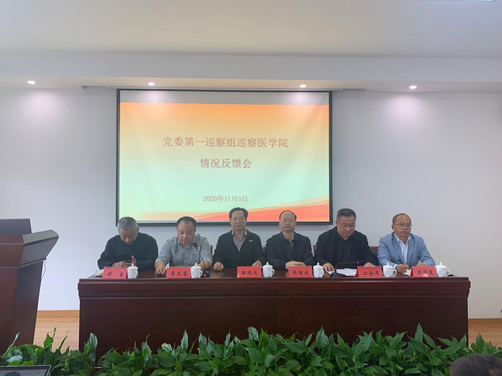 11月5日下午,校党委第一巡察组在会议室437召开医学院巡察情况反馈会。校党委副书记潘通天、校党委委员纪委书记吴国庆、巡察办主任李友富、巡察组组长江岳军及第一巡察组人员出席反馈会。