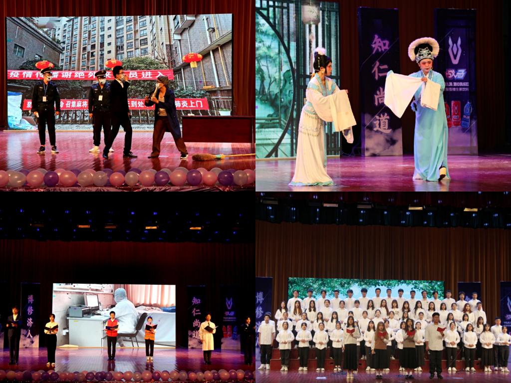 一曲《生活因你而火热》为晚会拉开序幕,让舞台瞬间激情起来。晚会第一篇章为“迷雾 雨后天霁”,舞蹈《战疫》刚柔并济,展现了疫情之下大家对新冠的有力抗击;小品《通行证》折射出疫情期间对人员流动的层层把关,严格却又不失温情;由康复协会带来的合唱朗诵《和你在一起》表达了对抗疫工作者辛苦付出的深深谢意,也将众志成城的精神传达给大家。朗诵《我向人民报道》带我们进入了第二篇章“破晓 花开疫散”,在疫情中各行各业的人团结一心,践行着他们心中的“大义”,只为等待冬日过后,那数不尽的生机;《破茧重生》戏腔婉转动听,让人感受到中国戏曲的无限魅力。在第三篇章“晨曦 携手医起”中,器乐串烧《乐府千音》、歌曲《你的答案》绽放青春色彩,点燃心中梦想,《白衣天使》则向我们展示了她们对这份工作的无限热爱。最后,晚会在歌曲《你的答案》中完美落幕。
