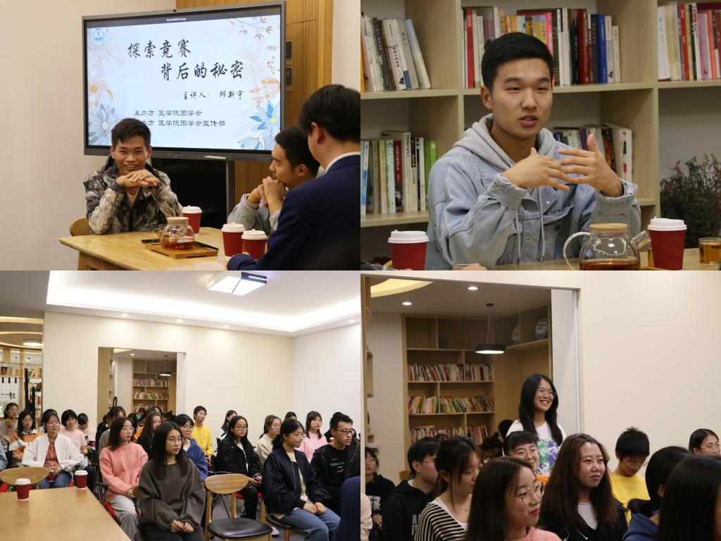 11月20日,医学院“以人为书,知仁博修”真人图书馆第4期活动在椒江校区心湖书吧正式举行。本次活动以“探索竞赛背后的秘密”为主题 ,17临床医学邱新宇担任分享嘉宾,医学院分团委书记章华婷受邀出席。
