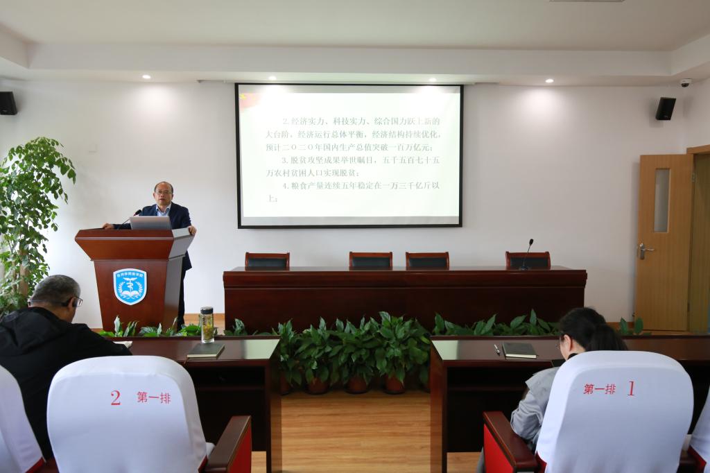 医学院党总支书记李仲斐在宣讲中指出,党的十九届五中全会是我们党在全面建成小康社会胜利在望、全面建设社会主义现代化国家新征程即将开启的重要历史时刻召开的一次十分重要的会议。全会把“十四五”规划与2035年远景目标统筹考虑,系统谋划2035年基本实现社会主义现代化宏伟蓝图,深入回答了关系当前和今后一个时期我国经济社会发展的一系列重大问题,对动员和激励全党全国各族人民战胜前进道路上的各种风险挑战,为今后一个时期我国发展指明了方向、提供了遵循。