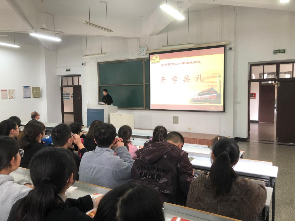 3月18日下午,医学院党总支举行了第二十期业余党校开学典礼。医学院党总支书记李仲斐作开班讲话并讲授首堂党课;党总支副书记周敏主持典礼;学院学生党支部书记及二百余名入党积极分子参加。