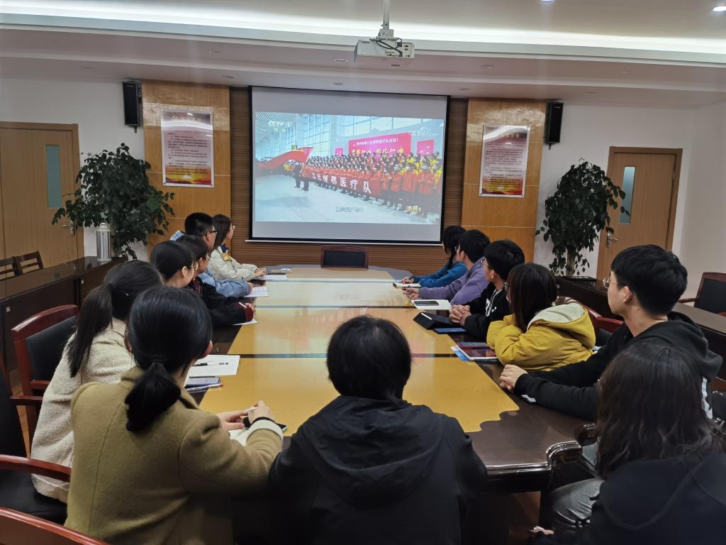 在观看会上,预备党员杨铮发言:在疫情冲击之下,由武汉起至全国各城市开始被新型冠状病毒覆盖,未知和惶恐淹没社会百姓的内心。但有那么一群人选择带头逆行,奋勇向前,他们就是我们身边优秀的党员同志和一系列优秀的党组织,不论身为何职,医护工作者,设备建设者又或是物资运送派发者,这一批批优秀的中国党员向我们树立着真的榜样。并引导在座预备党员时刻以先进典型为榜样,从伟大抗疫精神中汲取奋进力量,奋进新征程、建功新时代。