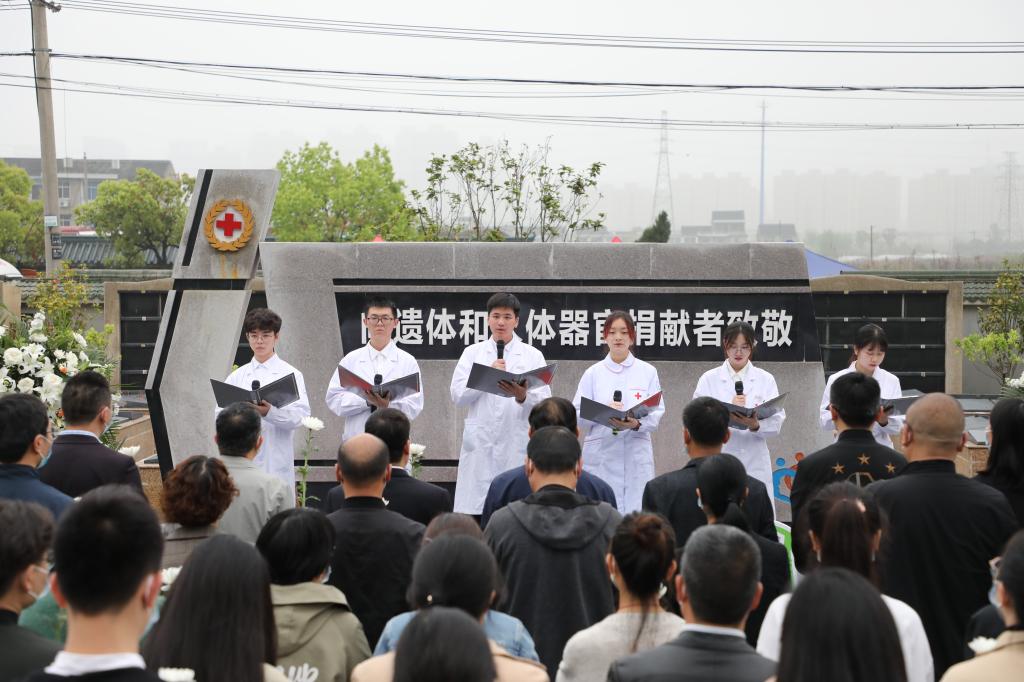 医学院学生朗诵《念你们的名字》,以诗歌形式铭记遗体捐献者,寄托哀思、感恩缅怀。与会医学生集体宣誓《医学生誓言》,继承大体老师的遗愿,立志做一个合格的医疗工作者。