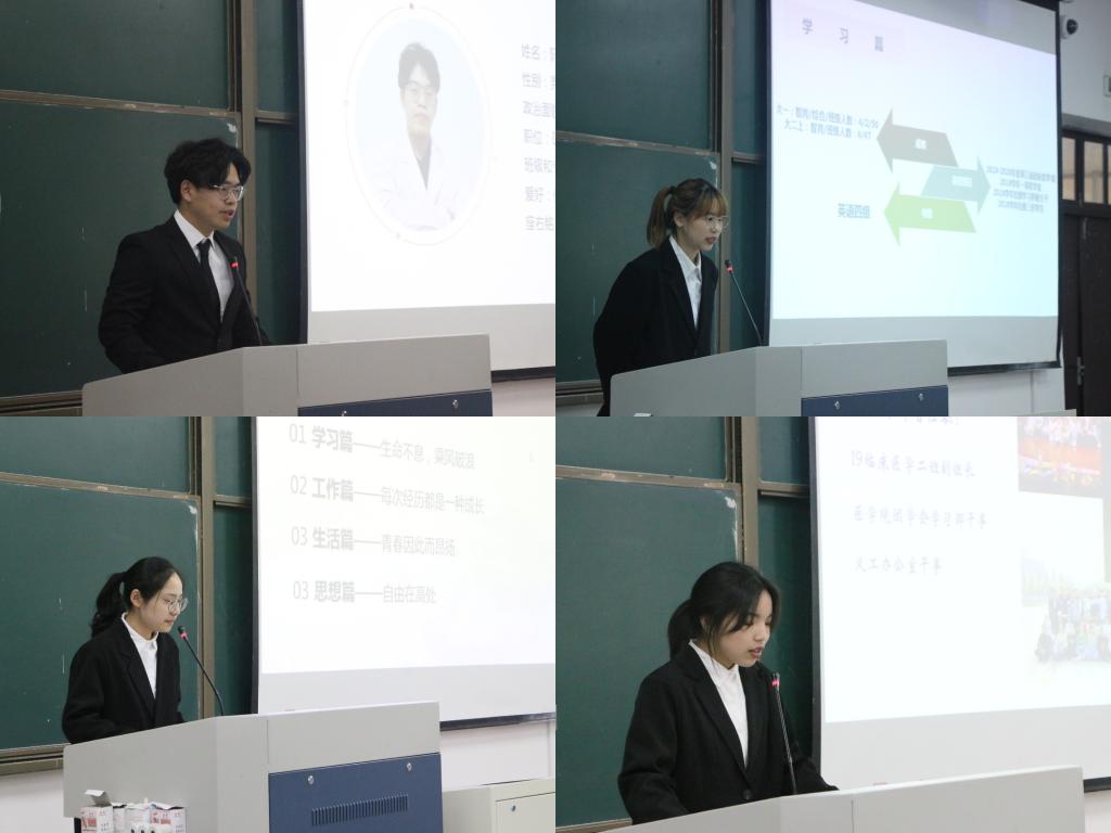 经个人、组织推荐与学院初评后,共有13名来自各年级的优秀学生进入现场评选。评选会上,候选人依次上台分享奋斗经历和个人荣誉,从学习成果、体育风尚、学生工作、学科竞赛、志愿服务等多方面展示医学生风采。热情之心促奋进,自信之貌露风采,13位候选人“医”路努力、追求进步,用实力赢得了观众们的热烈掌声和评委的肯定。