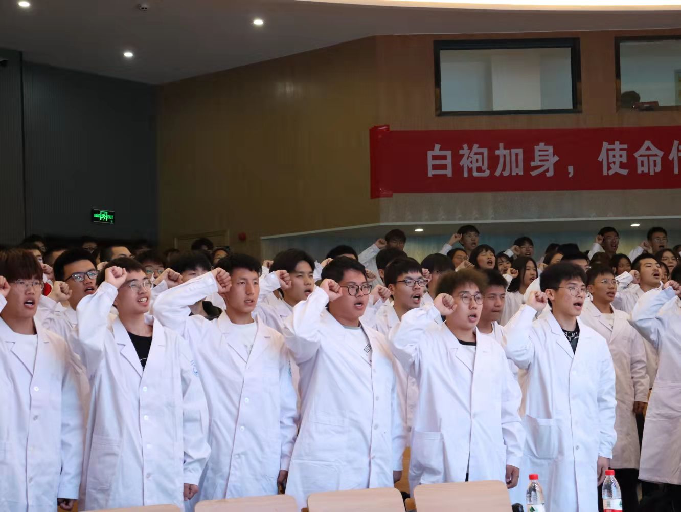 “白袍加身,使命传承。仁心仁德,医梦起航。”授白大衣仪式赋予了21级新生责任感和归属感,使其体会到医学的神圣。他们必会带着敬畏之心学习医学,时刻用医学界前辈的言行规范自己,用医学生誓言要求自己,为成为一名优秀的医者拼尽全力!