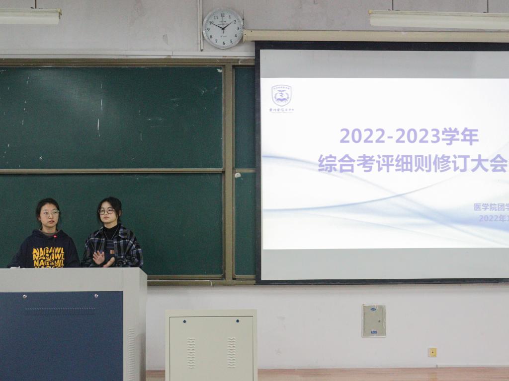 为进一步做好学生综合考评工作,充分调动广大学生奋发向上的积极性和主动性,11月24日下午,医学院召开2022学年综合考评细则修订大会。医学院辅导员刘明敏、章华婷、任仲佩、金雯雯,团学会干部,四大公益组织代表,各班班长团支书及学生代表出席本次会议。