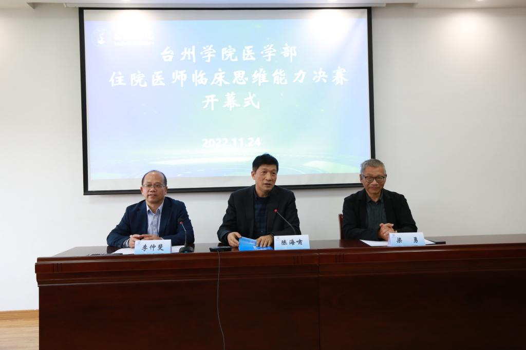 11月24日,2022年台州学院医学部住院医师临床思维能力决赛在医学院大楼举行。本次比赛由台州学院医学部主办,医学院承办。医学部主任陈海啸以及来自各附属医院的7位专家担任决赛评委。决赛开幕式由医学院党委书记李仲斐主持,医学院院长梁勇致欢迎辞。