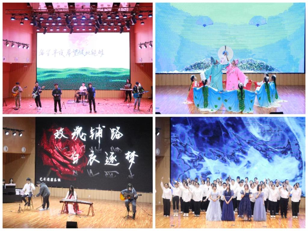 晚会伊始,青椒1139乐队带来的《无人的海边》和《骄傲的少年》便点燃全场,气氛沸腾。晚会共分为三个篇章,第一篇章“始业篇:青春伊始,医路启航”,越剧《梁祝·十八相送》举手投足间尽显古典韵味,令人回味无穷,舞蹈《pink dream》用曼妙的舞姿,将晚会推向高潮,朗诵《追随》传递出对医学先贤的敬佩之情和执着追随的信念。《不为谁而作的歌》用美妙的歌声为第二篇章“事业篇:晨曦无恙,医路有你”缓缓拉开序幕。《玫瑰铺路,白衣逐梦》流淌出梦想的力量,引领人坚定前行,小品《戏精诈骗公司》让人捧腹大笑。一春一秋,如诗如歌;一笔一划,似梦似幻,《浮光》的表演者们用婀娜的身姿和轻盈的舞步带领我们走进古典舞的世界,将晚会拉入最后一个篇章“敬业篇:砥砺深耕,医路星光”。随后医检协会带来的《celebrity》,带我们回忆那曾经青春无悔的时光。眼中炽热的恒星,长夜里照我前行,晚会在大合唱《星辰大海》优美的歌声中圆满落幕。