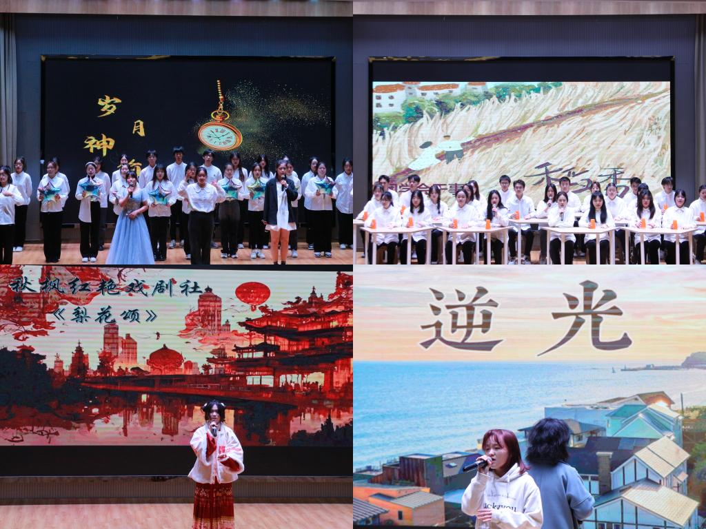 舞蹈组以热情的舞蹈引爆全场,拉开第一篇章的序幕。《夜空中最亮的星》指引青年前进的方向,《少年说-济世良医》高歌青年的远大志向,合唱与舞蹈交融的《裂缝中的阳光》于冬日里送出温暖。幽默风趣的小品《如此导航》翻开了第二篇章,别出心裁的《稻香》尽显青春活力,一曲《逆光》扣人心弦,唱响青年的担当。第三篇章中情景剧《急救》展现青春风貌,合唱手语《少年中国说》彰显青年风采,戏剧《梨花颂》惟妙惟肖。娓娓动听的合唱《岁月神偷》、拍手叫绝的小品《时间都去哪了》、感心动耳的合唱《无与伦比的美丽》为本次晚会画上了圆满的句号。