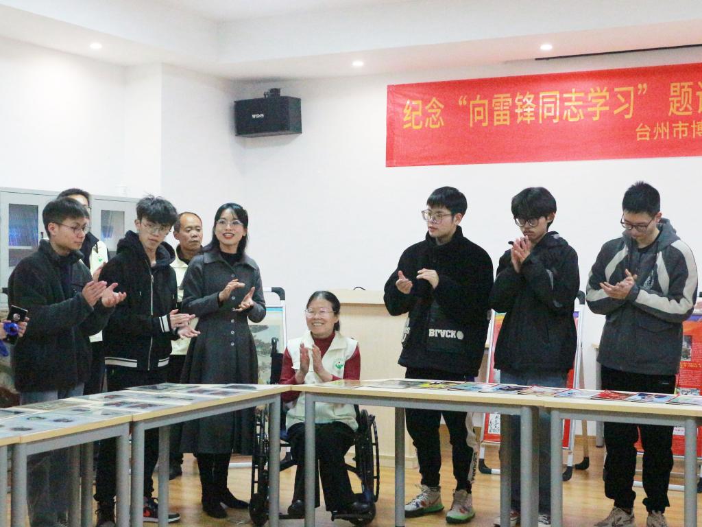 台州市博爱者协会会长杨兰娇坐在轮椅上,为身边的大学生们详细介绍雷锋同志生平,她历数雷锋同志的伟大事迹,号召学子们积极主动学习和感悟雷锋精神。杨兰娇是一位热心公益志愿者,累计志愿服务时间上万小时,曾获“中国红十字志愿者之星”“汶川地震抗震救灾优秀志愿者”“浙江好人”等荣誉。回望自己数十年的公益事业生涯,杨兰娇说:“由于身体原因,我没能圆大学梦,是雷锋精神一直激励着我,在奉献社会中实现自己的人生价值。”她以亲身感悟寄语医学生,要争做新时代的“活雷锋”,将精神化为行动,踊跃服务社会,争做时代新人,让雷锋精神永驻校园。