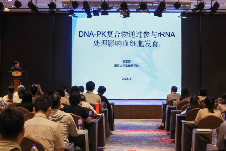 简短的开幕式后,正式进入学术报告环节。学术报告分为主旨报告、青委报告和青年报告三个部分。主旨报告分别由来自上海交通大学赵健元教授分享的“孕期氨基酸失调致子代先天性心脏病的分子机制”,郑州大学王威教授分享的“焦炉作业加速生物学衰老研究”,杭州师范大学郑宇军教授分享了“智能中医辨证论治:从深度学习到深度优化”,浙江大学邵正萍研究员深入介绍了 DNA-PK 复合物通过参与 rRNA 处理影响血细胞发育机制。青委报告由来自中国医科大学的邓宇教授的“RNA 去甲基化酶 FTO 在锰致神经毒性中的作用与机制研”,贵州医科大学王大朋教授“无机砷诱导 Kupffer 细胞中 Toll 样受体 4 介导的免疫炎症激活参与 砷致肝星状细胞活化过程”,安徽医科大学 赵玲俐教授母体孕期暴露邻苯二甲酸二(2-乙基己基)酯对子代的近期和远期影响”,浙江大学陈柯列助理研究员“塑料主成分双酚 A 促卵巢癌进展的作用及机制研究”。青年报告,来在12个院校的13名青年科学家围绕着自己研究领域的成果做了系统的报告,并对“青年学者奖”展开了激烈的角逐。
