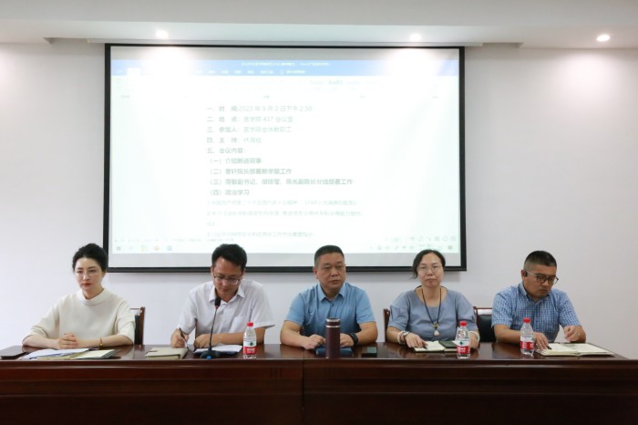 会上,林海斌书记介绍了新引进老师的情况,宣读了医学院系(部办)负责人任命文件,简要回顾了学院暑期岗聘、发展规划大讨论、人才引进、对外合作、教学教务、科研实验以及学生管理等方面的工作,对老师们的辛勤付出表示感谢,部署了本学期重点工作,强调要扎实推动党建工作与教学、科研、人才培养相融合,以高质量党建引领学院高质量发展,并领学了相关政治学习内容。
