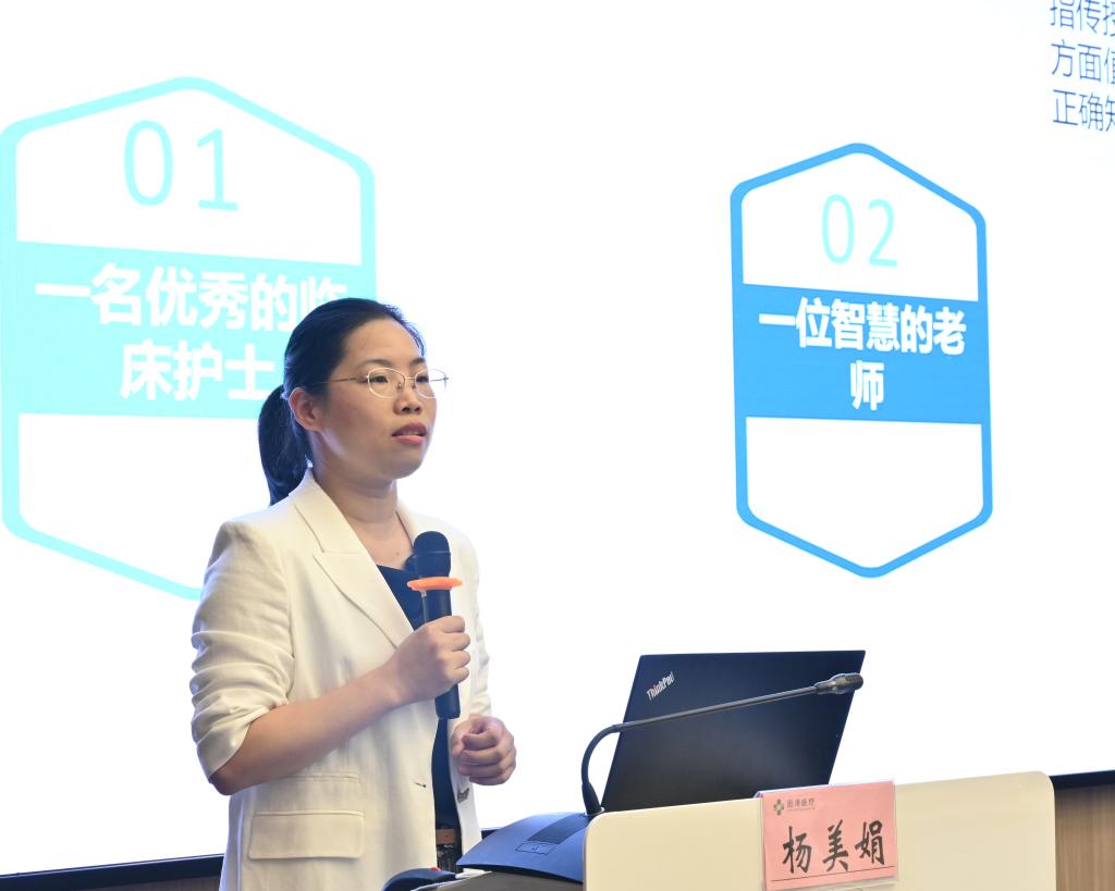 台州医院血管外科护士长杨美娟进行了题为《如何成为一个受欢迎的临床护理教师》的报告,从优秀临床护理教师的内涵、临床教师能力需求-教学的岗位胜任力和如何提升自己的教学能力进行了专业指导,分析了护理人员及教师需具备的岗位胜任力,提出了培养教学能力的良好思路。