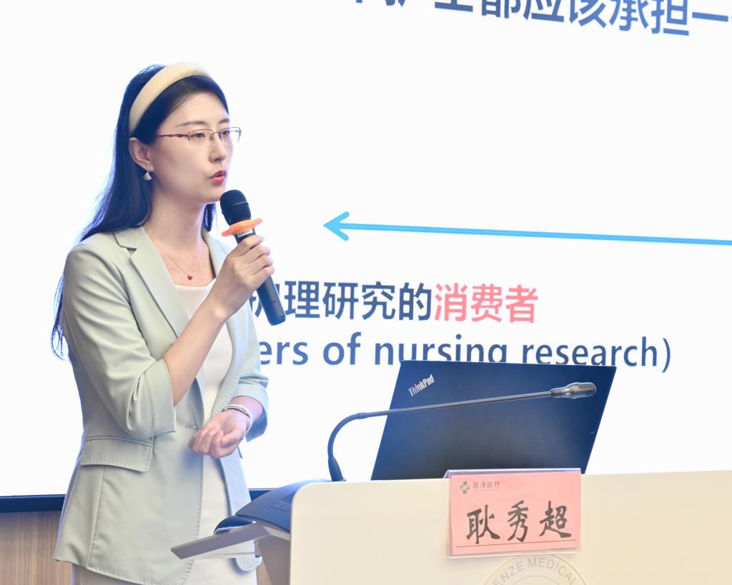 下午,台州学院医学院护理系副主任耿秀超进行了题为《临床护理科研思维与项目申报》的报告,她从临床护理教学与科研融合角度,对临床护理科研思维的培养和护理科研项目申报进行了剖析,指出需要运用科研思维来指导临床护理教学。