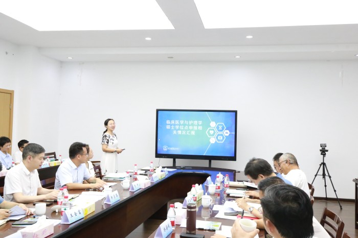 会上,医学院梁勇教授、陈光副院长、胡琼莹副院长汇报了临床医学本科专业学生临床阶段的教学安排与管理、硕士学位点申报情况和教学科研省部级奖项联合申报与培育等情况,医学院曹轩院长介绍了医学学科ESI排名总结与推进情况,医学院林海斌书记汇报了护理专项基金情况。
