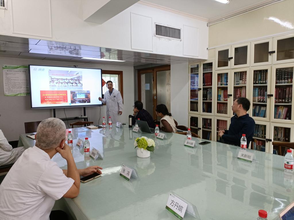 检查组听取医院科教科主任朱碧宏做医院教学工作汇报。他全面展示医院在教学制度、绩效激励、思政教育等方面的举措,后续将继续着力提高教学管理水平,与学院加强交流合作,为后续临床实习改革提供保障。