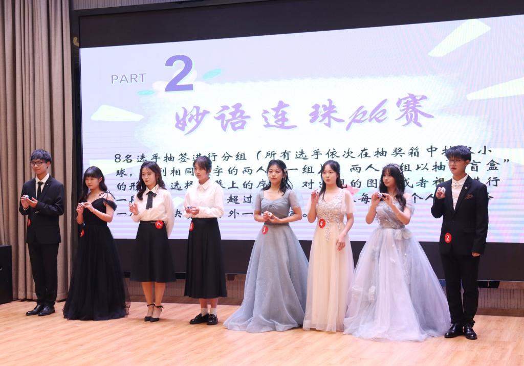 经过激烈紧张的初赛与复赛后,十名选手凭借其过硬的本领脱颖而出,入围决赛。大赛共分为三个环节,首轮“个人追逐赛”中,选手们扬己露才,以精妙绝伦的朗诵、配音展现个人风采。随后在“妙语连珠pk赛”中,晋级第二轮的8名选手抽签分组,两两pk,通过即兴述评比拼临场思维组织能力。4名待定选手在复活赛中巧妙应对突发情境,激烈角逐唯一的复活名额。最终“我来主持”环节,选手们思维敏捷,大胆创新,通过风格各异的自选节目展现编排、控场等综合主持能力,赛出自信主持风采。