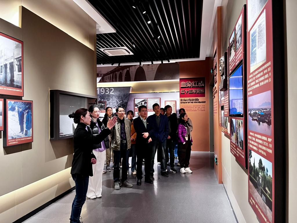 在讲解员的引导下,全体人员共同踏上了追寻红色记忆之旅。一行人参观了红十三军军部旧址、纪念碑和纪念馆,沉浸式重温了那段峥嵘岁月。1930年5月,浙南红军游击队在这里正式组建为工农红军第十三军,以附近山区为根据地,在敌人残酷的围剿和白色恐怖中,进行英勇顽强的斗争。大家走进纪念馆,珍贵的照片、影像资料和战士使用过的土炮、刀枪等实物将革命先辈的事迹一一再现在眼前。赤脚大仙陈文杰、大义凛然的金贯真、视死如归的李得钊、胡红进的暖心黑马褂、张应用的两块银元……1700余名共产党员和红军指战员前赴后继,用鲜血和生命谱写了壮丽的史诗,孕育和凝结成为怀抱理想、敢为人先的求真精神、艰苦奋战、不怕牺牲的斗争精神和为民奉献、自强不息的进取精神。
