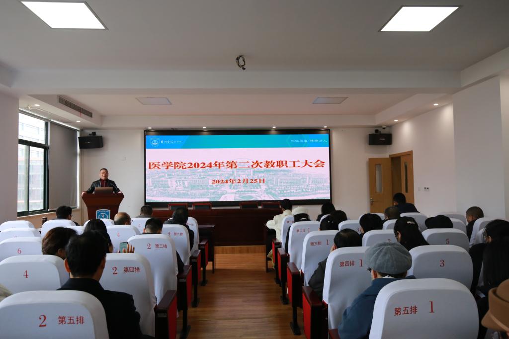 2月25日下午,医学院在A437召开2024年春季学期开学初全体教职工大会。学院党政领导及全体教职工参加会议,会议由院党委书记林海斌主持。