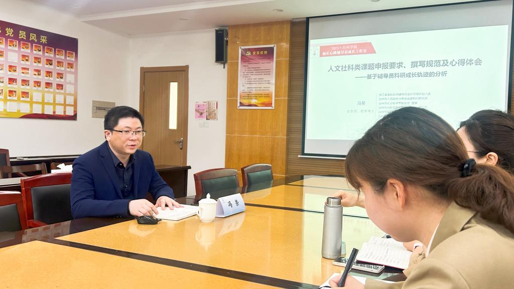周敏总结指出,科研是辅导员工作的重要职责,也是职业发展的重要路径,希望各位辅导员以榜样为引领,汲取宝贵经验,努力成长历练;学院重视辅导员队伍提质建设,将积极搭建平台支持辅导员提升发展。