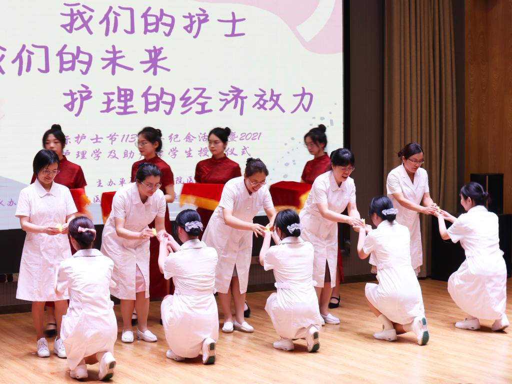 为纪念国际护士节113周年,传承发扬南丁格尔精神,5月7日晚,医学院于3-207举办以“我们的护士,我们的未来”为主题的国际护士节纪念活动暨2021级护理学及助产学学生授烛仪式。医学院党委书记林海斌,党委副书记周敏,党委委员、护理系主任刘晓红,分团委书记李袁杰,护理系教师代表应邀出席。