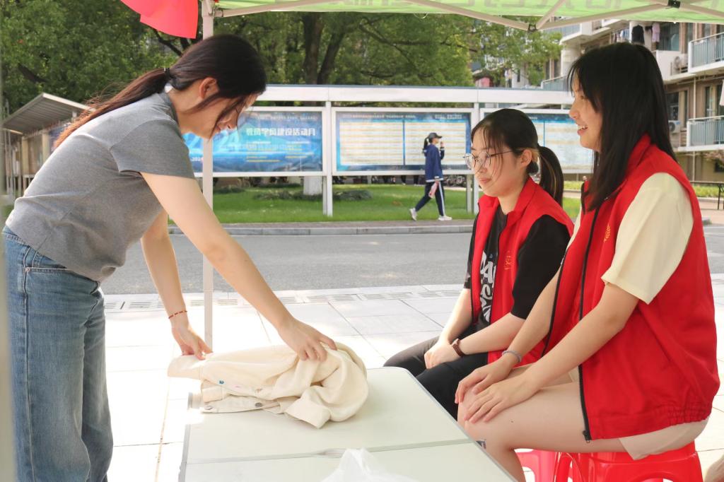 5月18日,台州学院慈善义工服务队在椒江校区青年广场举办“一份温暖,让爱传递”主题环保节衣活动,在解决同学们旧衣物无处安放的问题的同时,呼吁大家奉献一份爱心,传递一片温暖。