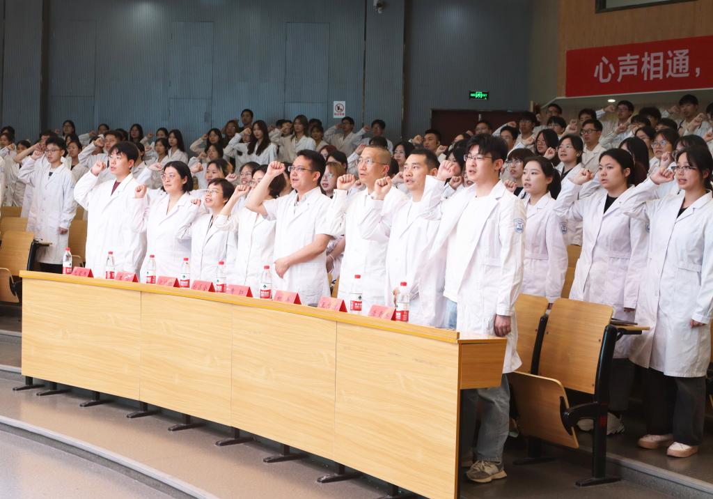 医学院第十届临床医学职业宣誓暨授听诊器仪式于5月20日晚在3207举行。医学院院长曹轩,基础医学部副主任姚军,临床系副主任杨晶金,预防医学系王祥虎,21临床医学班主任包晓红、王婷,21级辅导员阮蒙杰,医学院分团委书记李袁杰应邀出席,2021级全体临床医学生参与本次活动。
