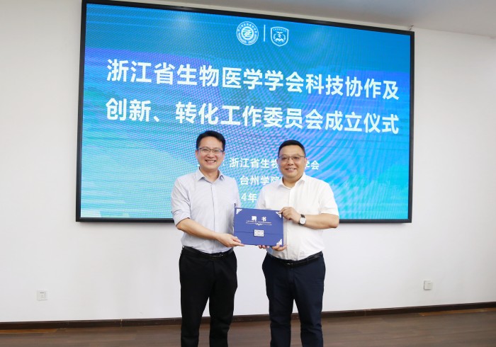 5月24日,浙江省生物医学学会科技协作及创新、转化工作委员会成立仪式在台州学院医学院举行。本次会议由台州学院医学院承办,浙江省生物医学学会专家、浙江海正药业股份有限公司、浙江天宇药业股份有限公司、浙江丰安生物制药有限公司企业代表参加会议。台州学院医学院院长曹轩主持仪式。