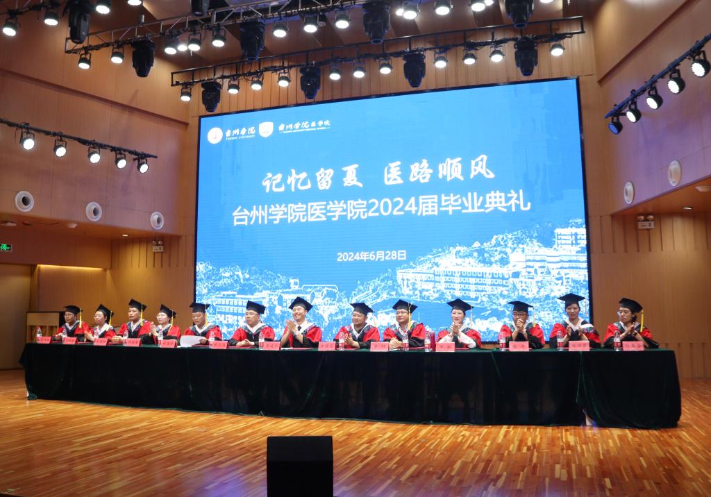 记忆留夏,医路顺风。6月28日上午,台州学院医学院2024届毕业典礼隆重举行,443名毕业生翻开人生新篇章,告别母校,医路毅行,奔赴山海。校党委委员、副校长李建军,台州市中心医院党委书记陈保富,台州市立医院党委书记林荣海,医学院院长曹轩,医学院党委书记林海斌,医学院党委副书记周敏,医学院副院长胡琼莹、陈光,医学院院长助理赵善坤,院各系部主任、副主任出席典礼并在主席台就座。各毕业班班主任、毕业年级辅导员、系部办教师代表共同出席见证,部分毕业生家长到场观礼。