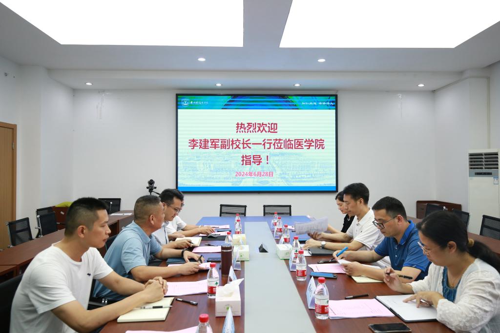 6月28日下午,校党委委员、副校长李建军调研医学院。校教务处副处长蒋胜韬、张艳和黄江峰等陪同。