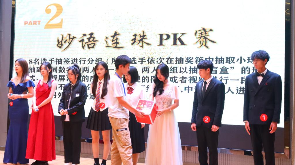 “妙语连珠PK赛”环节,晋级第二轮的八名选手现场抽签分组