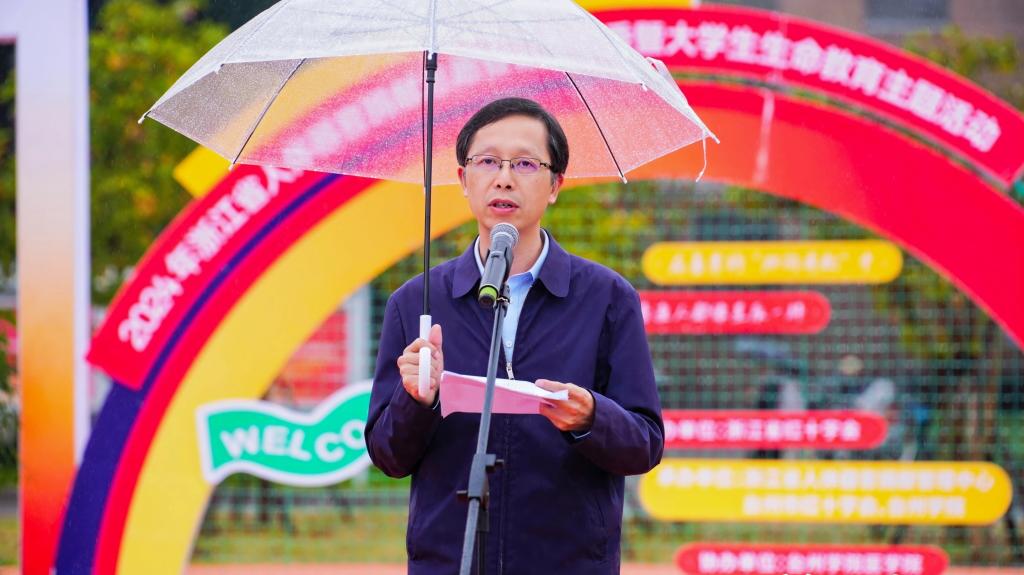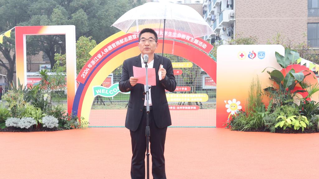 11月14日下午,伴随着蒙蒙细雨,“生命之约,大爱传递”2024年浙江省人体器官捐献志愿登记宣传季暨大学生生命教育主题活动在青年广场举行。浙江省红十字会党组成员、秘书长张孚传,台州学院党委副书记项凤日,台州市红十字会党组书记、常务副会长应正南,浙江省人体器官捐献管理中心主任贺佳晶,台州学院医学院党委书记林海斌、副书记周敏,台州市红十字会党组成员、副会长涂道兵出席,台州市各县区志愿者代表及台州学院师生代表参加活动。