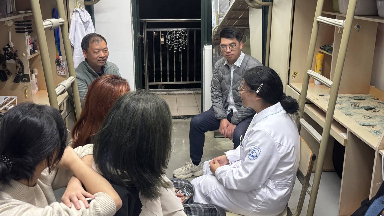 教务处副处长黄江峰在医学院结对宿舍与同学们交流
