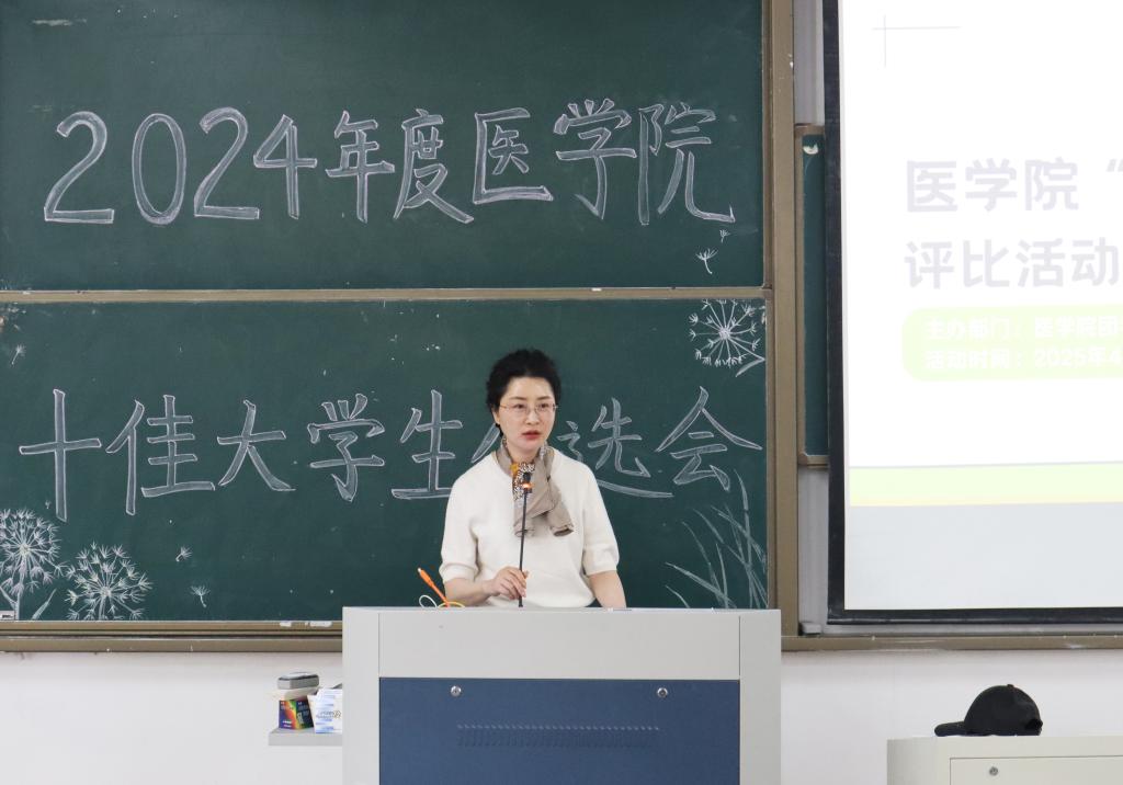 候选人全部展示完毕后,周敏对参评学生的综合表现给予高度评价。她指出,“十佳大学生”不仅是个人的荣誉,更是医学院育人成果的集中体现,希望全体同学以他们为榜样,牢记“健康所系,性命相托”的医学生誓言,秉持仁爱之心,不断精进专业,做到全面发展,在服务他人、奉献社会中实现人生价值。她对在座同学提出三点要求:一是注重科研,为未来发展搭建桥梁;二是积极参加各项竞赛活动,积累经验,全面发展;三是注意面试着装,彰显大学生青春面貌。