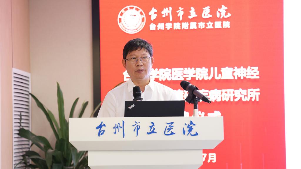 王金富在致辞中表示,台州学院医学院儿童神经精神发育障碍疾病研究所的成立是台州市立医院在儿童康复领域布局的重要一步,将有力推动相关疾病的基础研究、技术创新和人才培养,服务于国家卫生健康委《“儿科和精神卫生服务年”行动方案(2025-2027年)》的重大战略需求。他对研究所的未来发展寄予厚望。