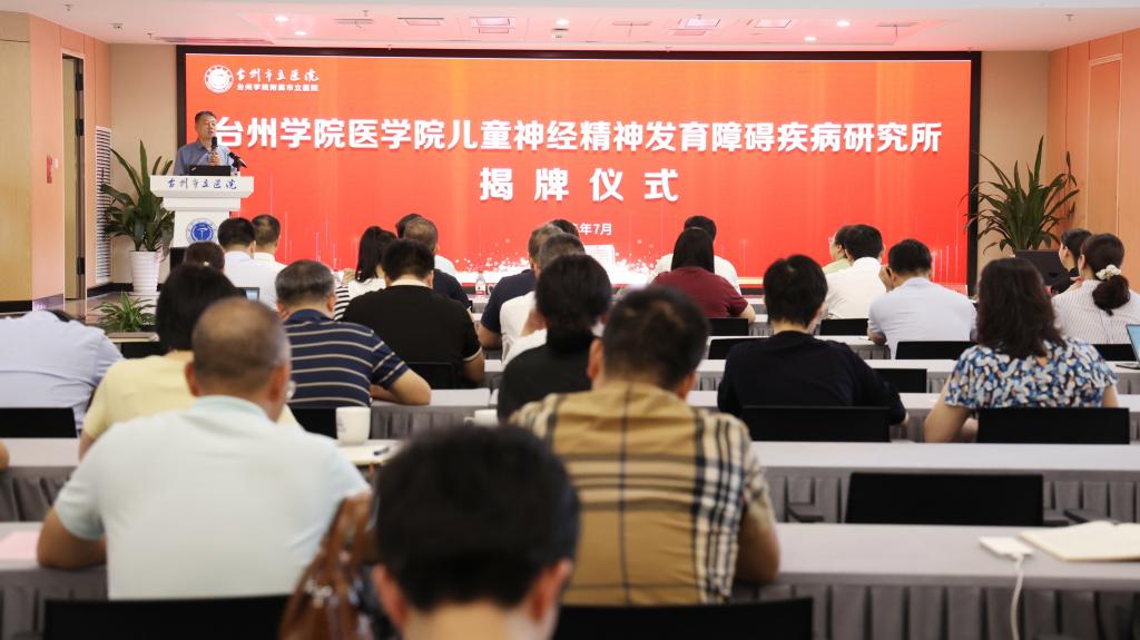 7月29日,台州学院医学院儿童神经精神发育障碍疾病研究所揭牌仪式在台州市立医院(台州学院附属市立医院)博济厅隆重举行。台州学院医学院院长曹轩教授、台州市立医院(台州学院附属市立医院)党委副书记、院长王金富、台州学院医学院副院长胡琼莹教授、研究所所长郎伯旭教授等出席仪式。