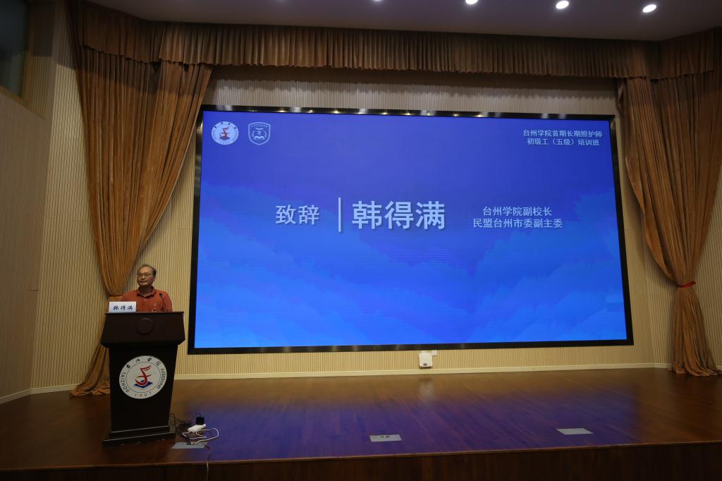韩得满代表学校向与会代表的到来表示诚挚的欢迎,并介绍了我校在医学教育上的办学特色与办学成果。他表示我校将以全校之力,以高要求、严标准为台州市长护事业培养更多“生力军”,力争将台州打造成全省长期照护人才培养基地,向全省输出长期照护继续教育的台州样本,台州品牌。同时他希望学员们以“空杯心”投入专业学习,以“敬畏心”对待长护事业,以“责任心”传承医学使命。