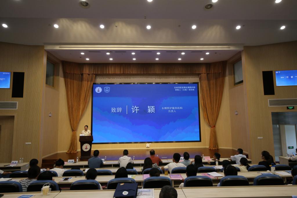 8月14日上午,我校与台州市医保局、民政局、人力资源和社会保障局在国际会议厅共同举办台州市长期照护师培训暨台州学院第一期长期照护师初级工(五级)培训班的开班仪式。我校副校长韩得满,台州市医保局副局长刘宝、台州市民政局副局长潘安、台州市人力资源和社会保障局王红伟处长、台州市民政局王骁伟副处长、台州市易得康养老服务有限公司负责人许颖、台州学院医学院副院长陈光、台州学院国际护理学院副院长刘晓红等部门和机构的相关领导应邀出席,培训教师与全体学员等近100人参加仪式。会议由台州学院医学院党委书记林海斌主持。