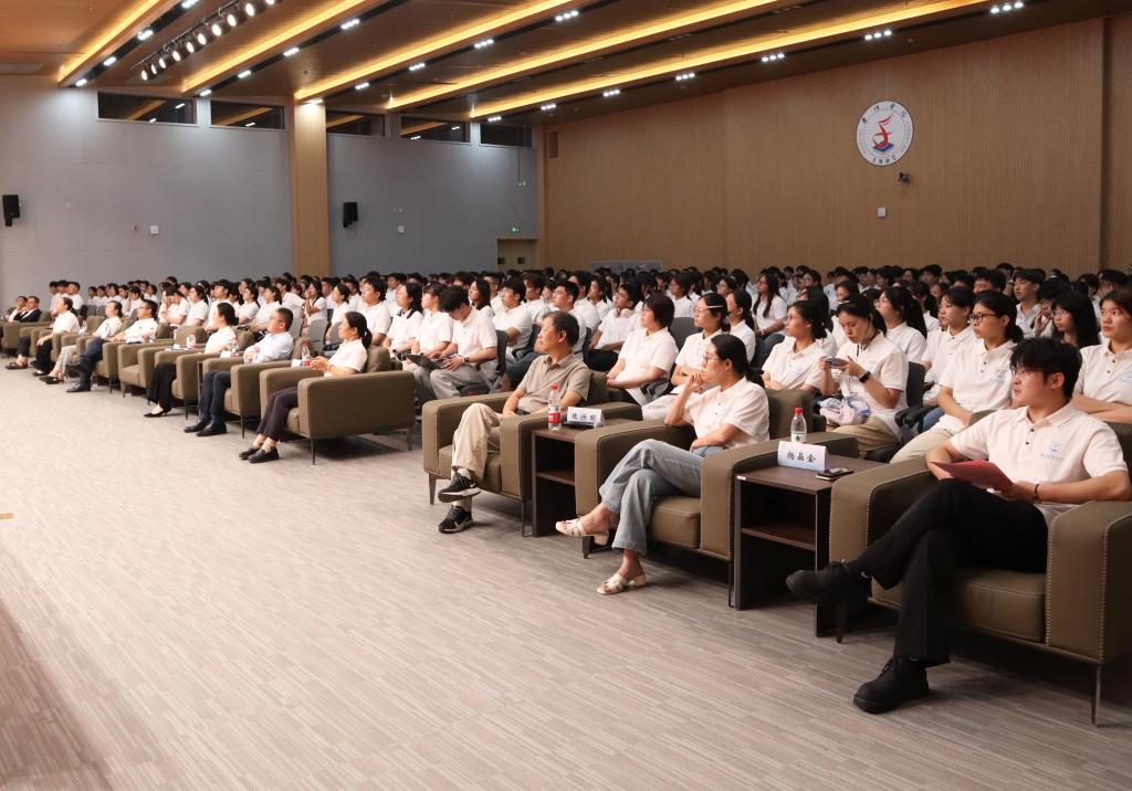林海斌细数台州“山海相拥、产业勃兴”的地域特色,让新生感知城市脉动;阐述台州学院“守正创新、砥砺前行”的发展现状,让新生明晰学校根基;描绘医学院“锐意进取、迈向卓越”的未来愿景,让新生坚定求学方向;更解读了医学院“知仁尚道,博修济人”的院训精神,阐释了院徽中“守护生命、传承医道”的深刻内涵,让新生对求学之地、所属学院有了更鲜活立体的认知。