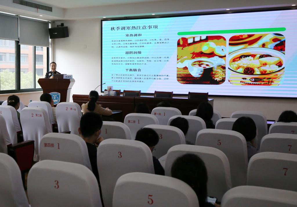 活动开篇,上海高级专家会诊服务中心主任陈雨泽以《秋季饮食养生小常识》为题开展专题讲座。她结合丰富的中医理论与临床实践经验,围绕秋季“燥邪当令、阳气渐收”的气候特点,详细阐释“养肺润燥、健脾和胃、少辛增酸”三大养生原则,并结合日常饮食、作息给出可落地的实践方案。讲座内容深入浅出、语言生动通俗,引发在场教师强烈共鸣,大家纷纷通过记录、拍照等方式留存实用知识。