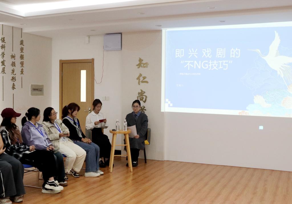 11月9日下午,医学院第十一期真人图书馆活动在A334举办。活动以“即兴戏剧的‘不NG技巧’——拥抱不确定性与创造性思维”为主题,邀请2023级护理学专业贝韩同学担任主讲嘉宾,医学院团学会主席及学生代表共同参与学习。
